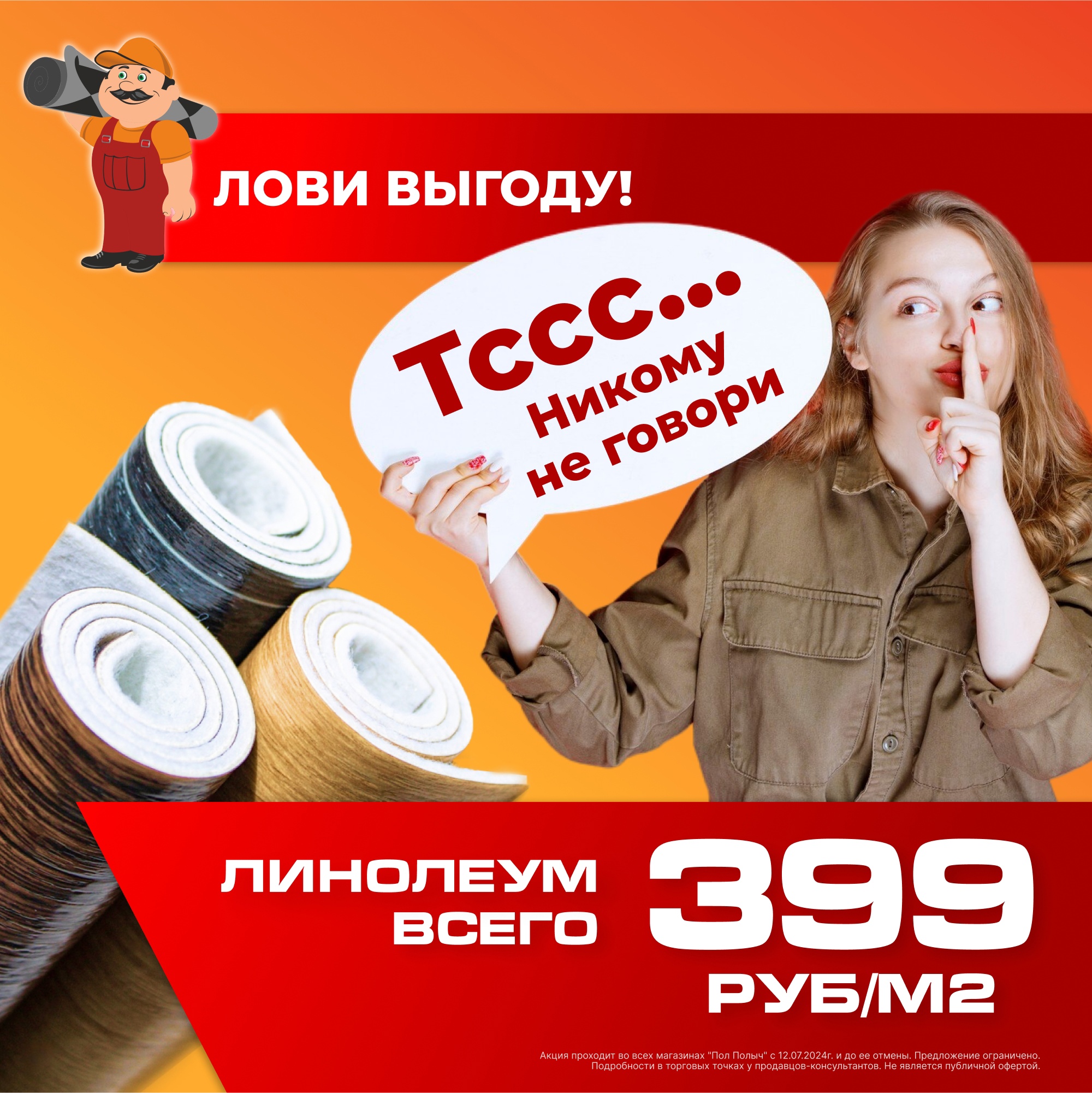 Всего 399 руб. за кв. м — невероятное предложение на линолеум!