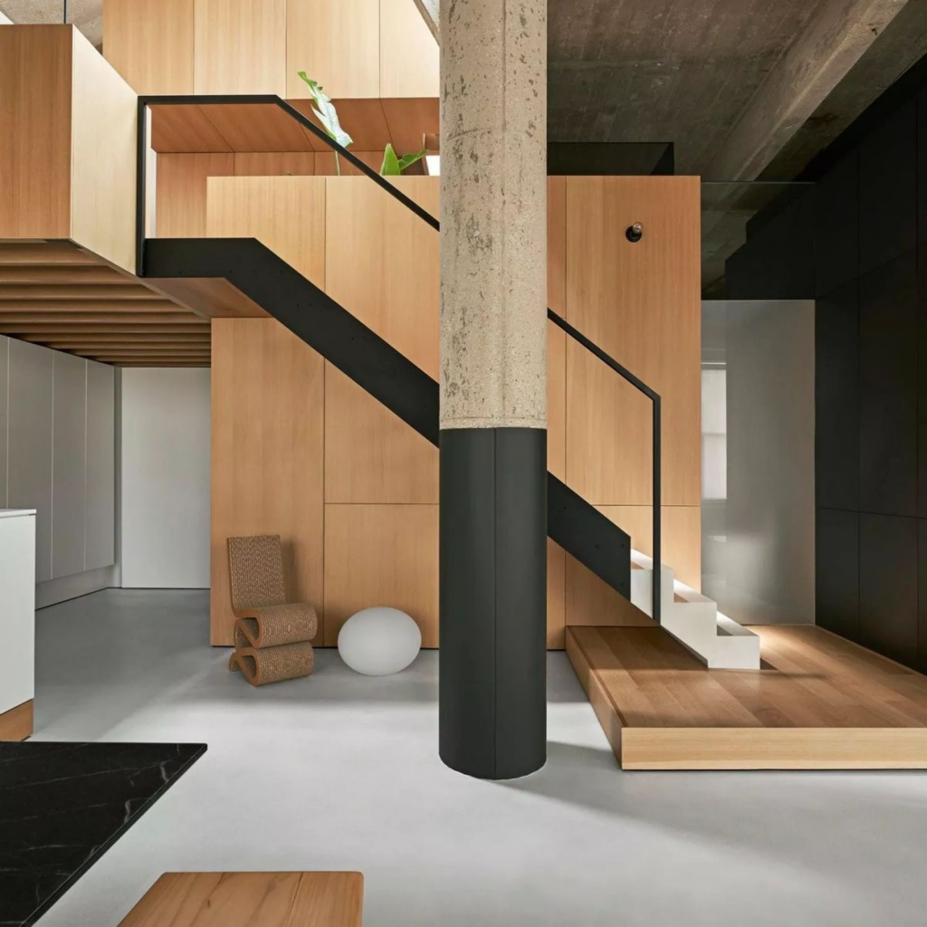 ✓ Мебель — строгая, лаконичная, максимально функциональная (в отличие от мягких скандинавских линий)